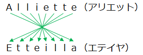 ご存知の方も多いとは思いますが、エテイヤの名前は、アリエットという本名のアルファベットのつづりをさかさまにしたものです。